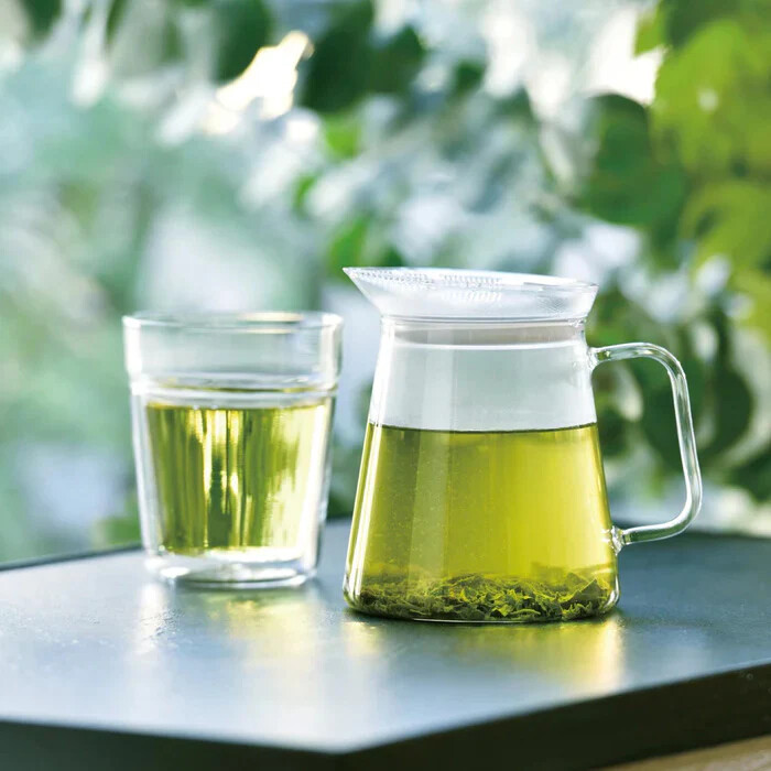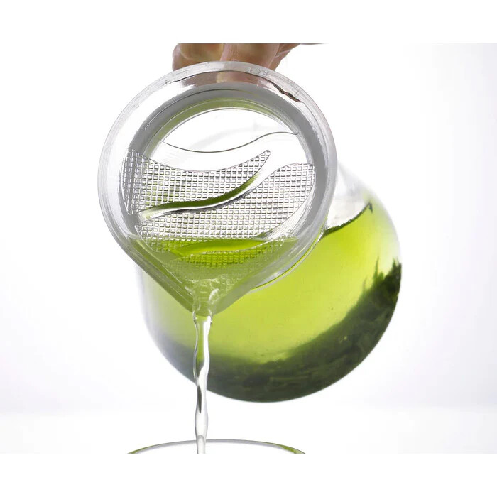 Модерновый стеклянный чайник для ежедневного заваривания листового чая: минимум деталей, встроенный фильтр в носике и термостойкое боросиликатное стекло обеспечивают чистый вкус и удобство в уходе.